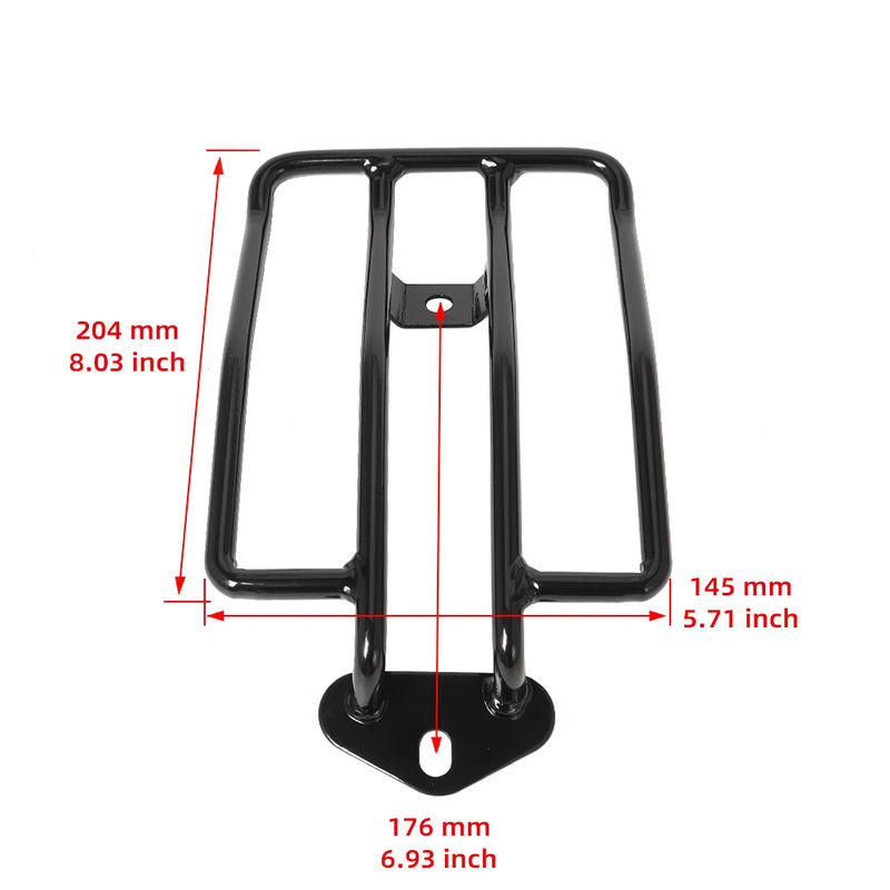 1고품질의 철강 구조: 이 오토바이 뒷 수하물 래크는 내구성 있는 철강으로 만들어져, 오래 사용되고 강한 짐을 지탱할 수 있는 능력을 보장합니다.금속 재료는 부패 및 마모에 저항을 보장, 신뢰할 수 있는 지원과 세련된 모습을 제공합니다.